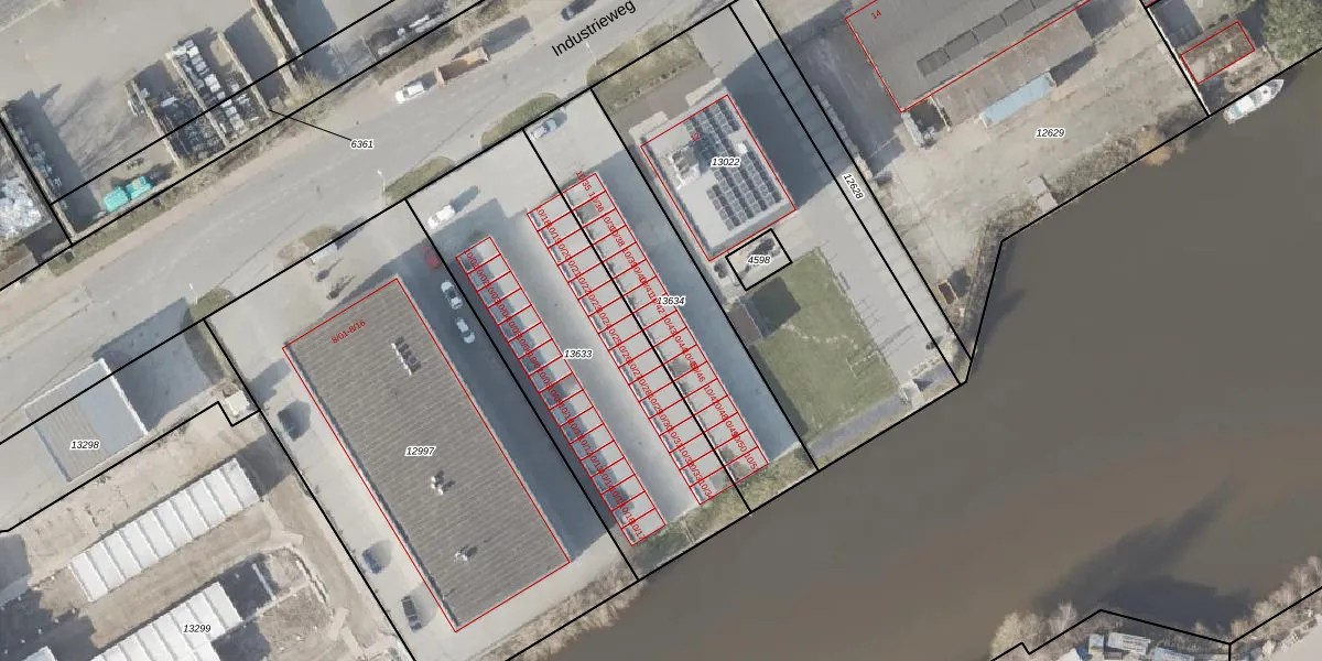 Industrieweg 10-43 is gelegen op kadastraal perceel NOP00AZ13634. Deze kadastrale aanduiding is uniek en wordt gebruikt door het Kadaster om eigendomsrechten en andere zakelijke rechten vast te leggen. Het perceel maakt onderdeel uit van de kadastrale gemeente Noordoostpolder.