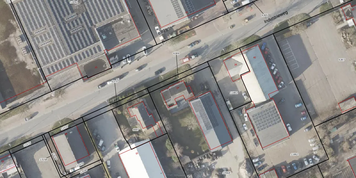 Het perceel waarop Industrieweg 34 staat heeft een oppervlakte van 2585 m². Dit is een zeer groot perceel. De perceeloppervlakte wordt geregistreerd door het Kadaster. Gedetailleerde informatie over de maten van dit perceel kunt u vinden in het rapport Kadastrale kaart met maatvoering van Industrieweg 34.