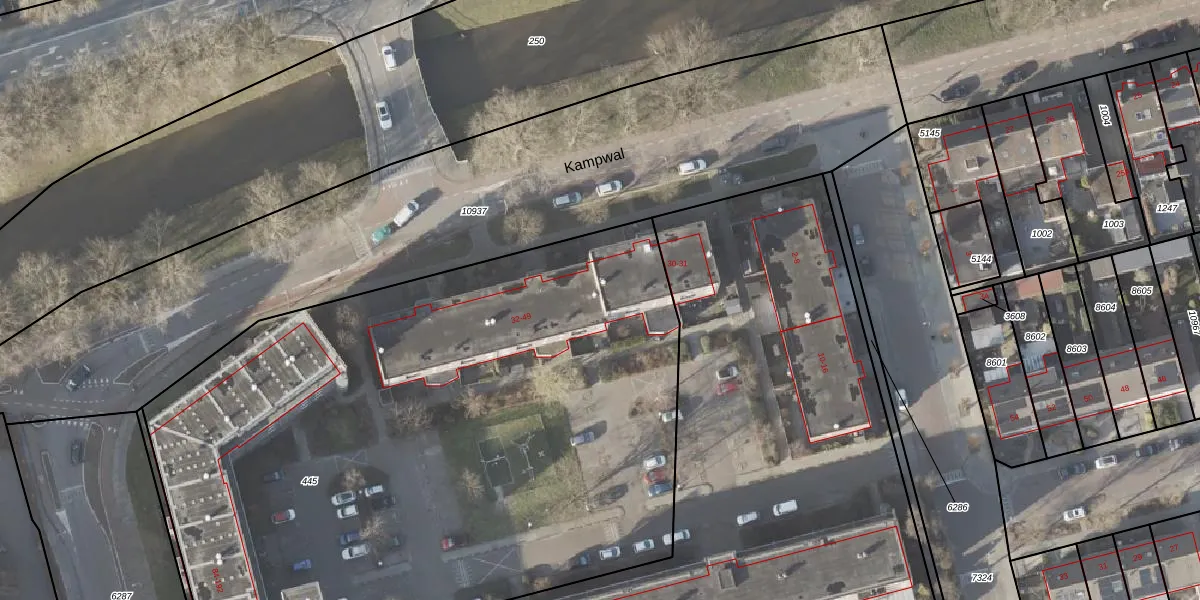 Het perceel waarop Kampwal 37 staat heeft een oppervlakte van 4695 m². Dit is een zeer groot perceel. De perceeloppervlakte wordt geregistreerd door het Kadaster. Gedetailleerde informatie over de maten van dit perceel kunt u vinden in het rapport Kadastrale kaart met maatvoering van Kampwal 37.