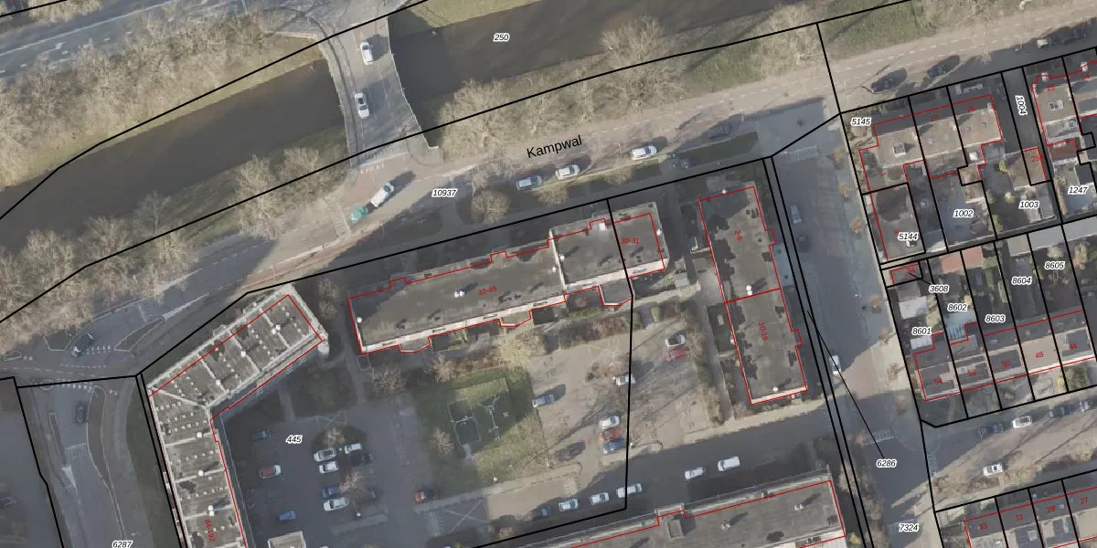 Het perceel waarop Kampwal 38 staat heeft een oppervlakte van 4695 m². Dit is een zeer groot perceel. De perceeloppervlakte wordt geregistreerd door het Kadaster. Gedetailleerde informatie over de maten van dit perceel kunt u vinden in het rapport Kadastrale kaart met maatvoering van Kampwal 38.