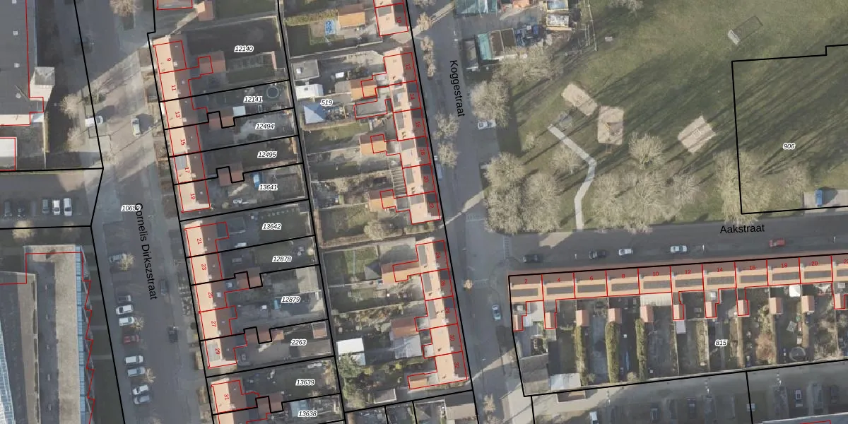 Het perceel waarop Koggestraat 22 staat heeft een oppervlakte van 3712 m². Dit is een zeer groot perceel. De perceeloppervlakte wordt geregistreerd door het Kadaster. Gedetailleerde informatie over de maten van dit perceel kunt u vinden in het rapport Kadastrale kaart met maatvoering van Koggestraat 22.