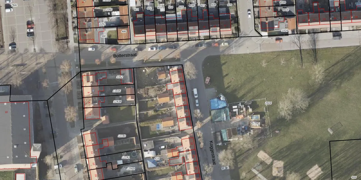 Het perceel waarop Koggestraat 4 staat heeft een oppervlakte van 3712 m². Dit is een zeer groot perceel. De perceeloppervlakte wordt geregistreerd door het Kadaster. Gedetailleerde informatie over de maten van dit perceel kunt u vinden in het rapport Kadastrale kaart met maatvoering van Koggestraat 4.