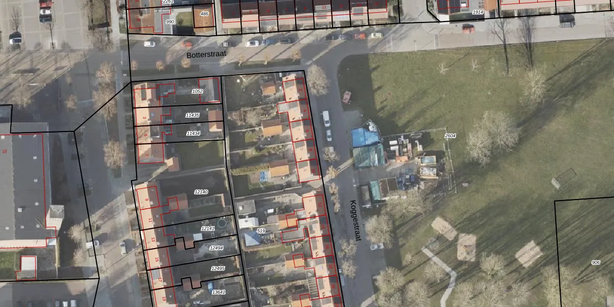 Het perceel waarop Koggestraat 8 staat heeft een oppervlakte van 3712 m². Dit is een zeer groot perceel. De perceeloppervlakte wordt geregistreerd door het Kadaster. Gedetailleerde informatie over de maten van dit perceel kunt u vinden in het rapport Kadastrale kaart met maatvoering van Koggestraat 8.