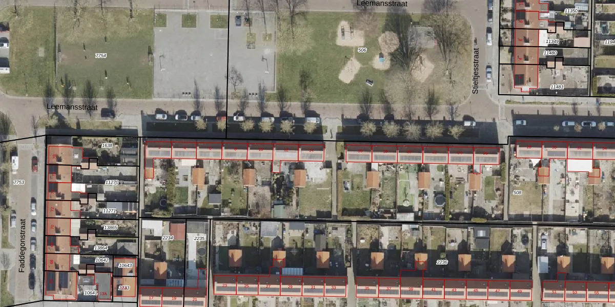 Het perceel waarop Leemansstraat 14 staat heeft een oppervlakte van 6040 m². Dit is een zeer groot perceel. De perceeloppervlakte wordt geregistreerd door het Kadaster. Gedetailleerde informatie over de maten van dit perceel kunt u vinden in het rapport Kadastrale kaart met maatvoering van Leemansstraat 14.
