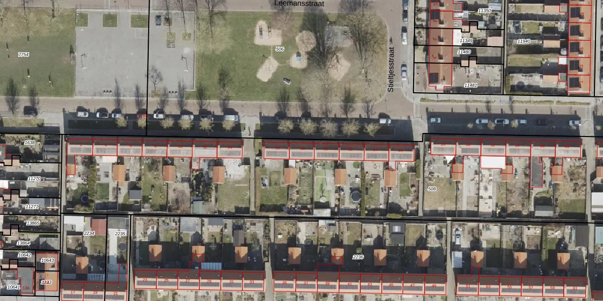 Het perceel waarop Leemansstraat 18 staat heeft een oppervlakte van 6040 m². Dit is een zeer groot perceel. De perceeloppervlakte wordt geregistreerd door het Kadaster. Gedetailleerde informatie over de maten van dit perceel kunt u vinden in het rapport Kadastrale kaart met maatvoering van Leemansstraat 18.