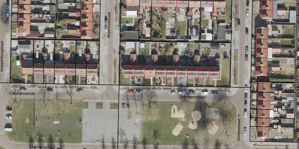 Het perceel waarop Leemansstraat 19 staat heeft een oppervlakte van 2228 m². Dit is een zeer groot perceel. De perceeloppervlakte wordt geregistreerd door het Kadaster. Gedetailleerde informatie over de maten van dit perceel kunt u vinden in het rapport Kadastrale kaart met maatvoering van Leemansstraat 19.