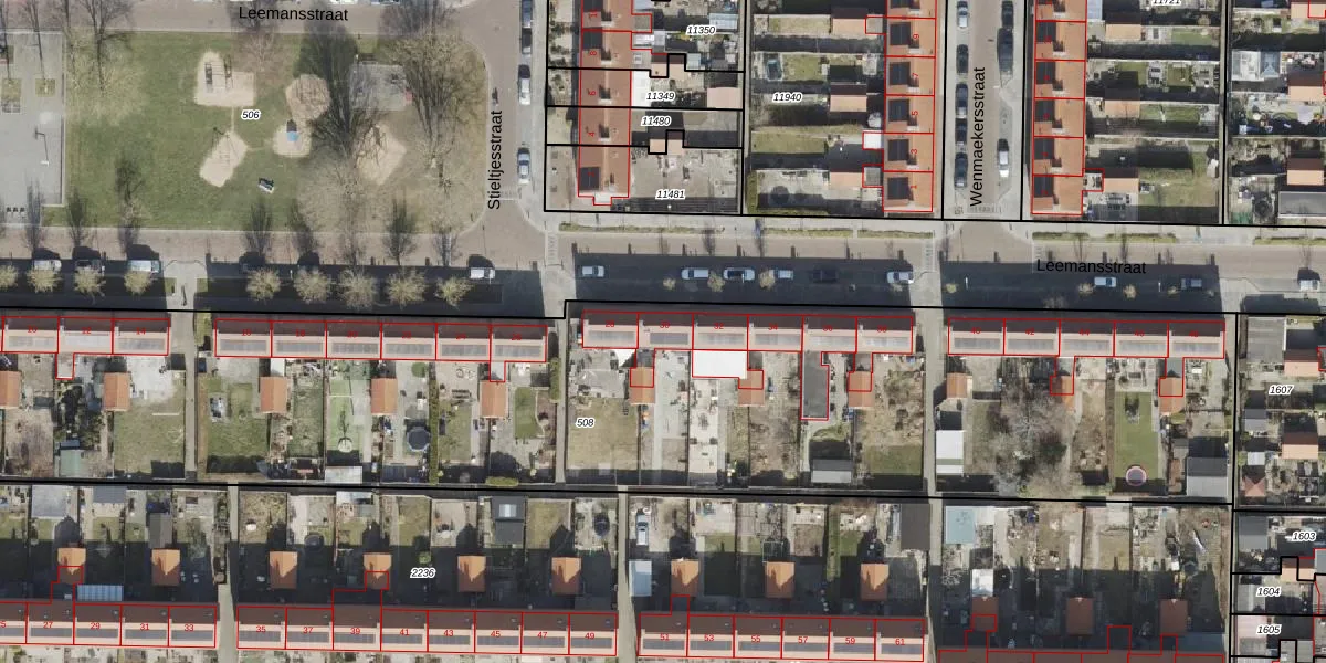 Het perceel waarop Leemansstraat 30 staat heeft een oppervlakte van 6040 m². Dit is een zeer groot perceel. De perceeloppervlakte wordt geregistreerd door het Kadaster. Gedetailleerde informatie over de maten van dit perceel kunt u vinden in het rapport Kadastrale kaart met maatvoering van Leemansstraat 30.