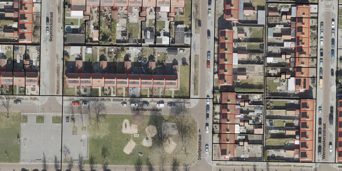 Het perceel waarop Leemansstraat 31 staat heeft een oppervlakte van 2228 m². Dit is een zeer groot perceel. De perceeloppervlakte wordt geregistreerd door het Kadaster. Gedetailleerde informatie over de maten van dit perceel kunt u vinden in het rapport Kadastrale kaart met maatvoering van Leemansstraat 31.