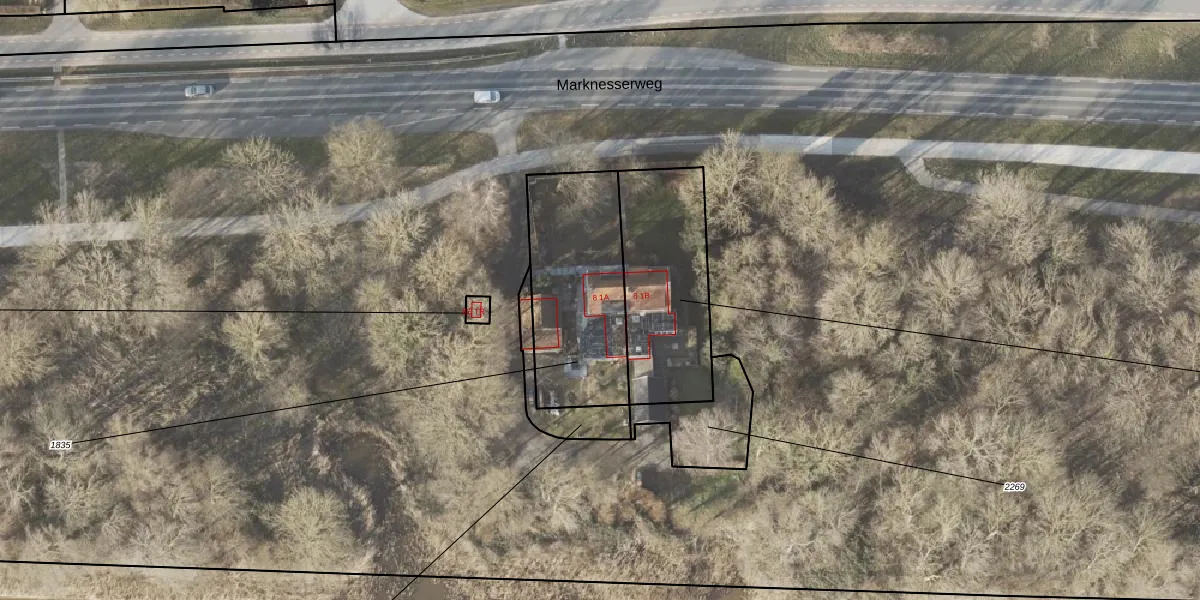 Marknesserweg 8-1A is gelegen op kadastraal perceel NOP00A1835. Deze kadastrale aanduiding is uniek en wordt gebruikt door het Kadaster om eigendomsrechten en andere zakelijke rechten vast te leggen. Het perceel maakt onderdeel uit van de kadastrale gemeente Noordoostpolder.
