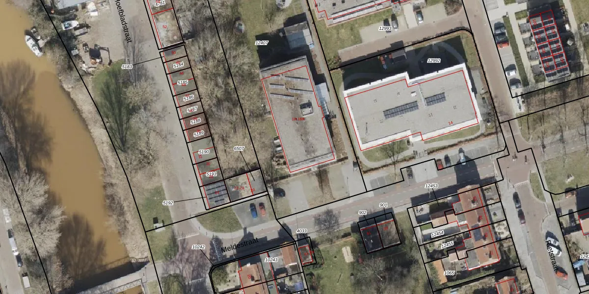 Het perceel waarop Meldestraat 18-B staat heeft een oppervlakte van 2675 m². Dit is een zeer groot perceel. De perceeloppervlakte wordt geregistreerd door het Kadaster. Gedetailleerde informatie over de maten van dit perceel kunt u vinden in het rapport Kadastrale kaart met maatvoering van Meldestraat 18-B.
