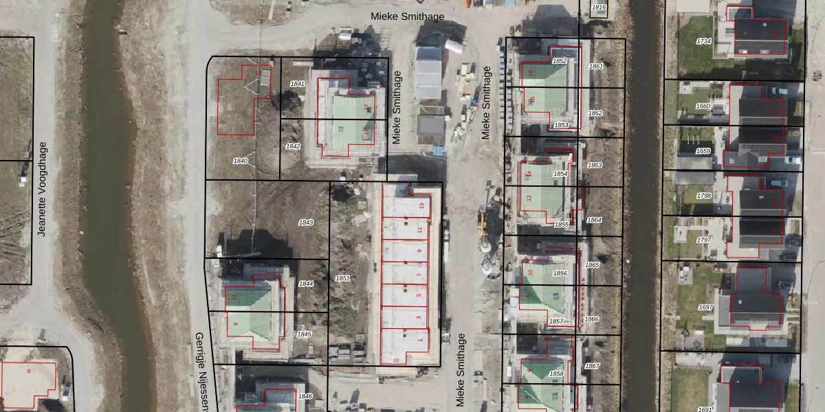 Mieke Smithage 13 is gelegen op kadastraal perceel NOP00AX1851. Deze kadastrale aanduiding is uniek en wordt gebruikt door het Kadaster om eigendomsrechten en andere zakelijke rechten vast te leggen. Het perceel maakt onderdeel uit van de kadastrale gemeente Noordoostpolder.