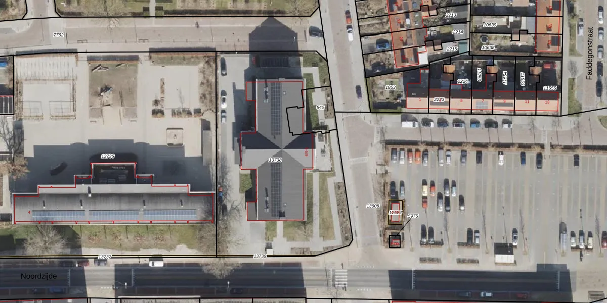 Noordzijde 5 is gelegen op kadastraal perceel NOP00AZ13738. Deze kadastrale aanduiding is uniek en wordt gebruikt door het Kadaster om eigendomsrechten en andere zakelijke rechten vast te leggen. Het perceel maakt onderdeel uit van de kadastrale gemeente Noordoostpolder.