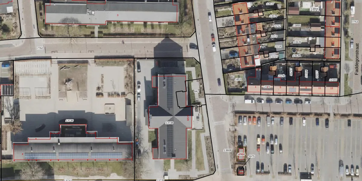 Het perceel waarop Noordzijde 5-19 staat heeft een oppervlakte van 2532 m². Dit is een zeer groot perceel. De perceeloppervlakte wordt geregistreerd door het Kadaster. Gedetailleerde informatie over de maten van dit perceel kunt u vinden in het rapport Kadastrale kaart met maatvoering van Noordzijde 5-19.