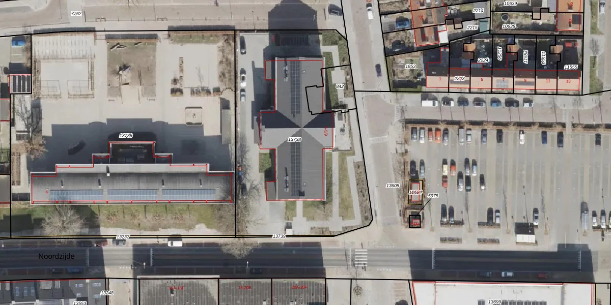 Noordzijde 5-35 is gelegen op kadastraal perceel NOP00AZ13738. Deze kadastrale aanduiding is uniek en wordt gebruikt door het Kadaster om eigendomsrechten en andere zakelijke rechten vast te leggen. Het perceel maakt onderdeel uit van de kadastrale gemeente Noordoostpolder.