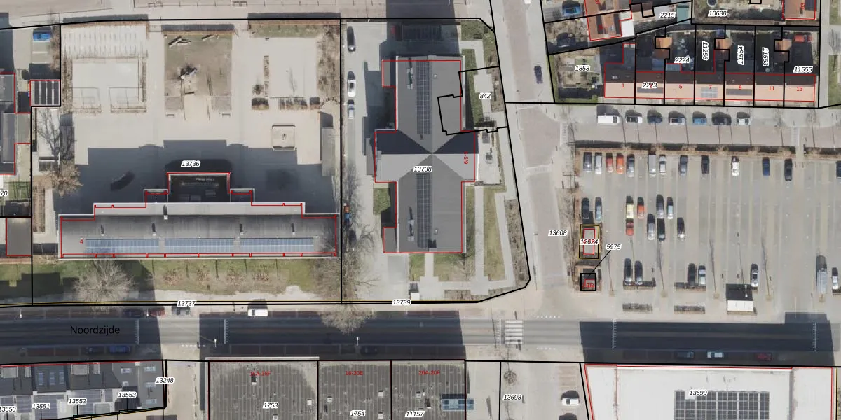 Noordzijde 5-39 is gelegen op kadastraal perceel NOP00AZ13738. Deze kadastrale aanduiding is uniek en wordt gebruikt door het Kadaster om eigendomsrechten en andere zakelijke rechten vast te leggen. Het perceel maakt onderdeel uit van de kadastrale gemeente Noordoostpolder.