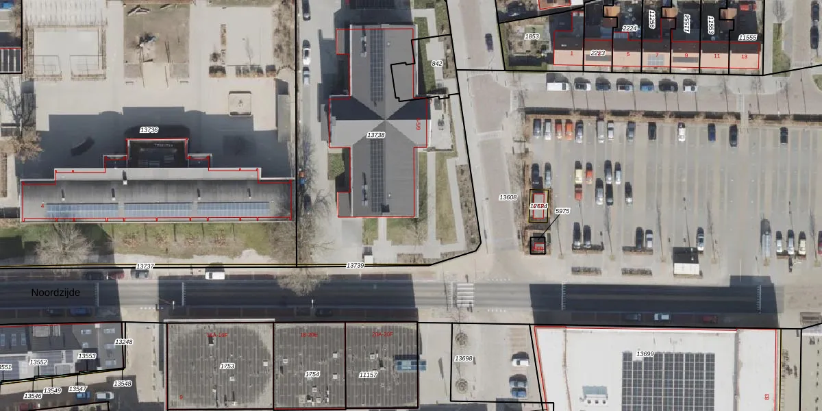 Noordzijde 5-9 is gelegen op kadastraal perceel NOP00AZ13738. Deze kadastrale aanduiding is uniek en wordt gebruikt door het Kadaster om eigendomsrechten en andere zakelijke rechten vast te leggen. Het perceel maakt onderdeel uit van de kadastrale gemeente Noordoostpolder.