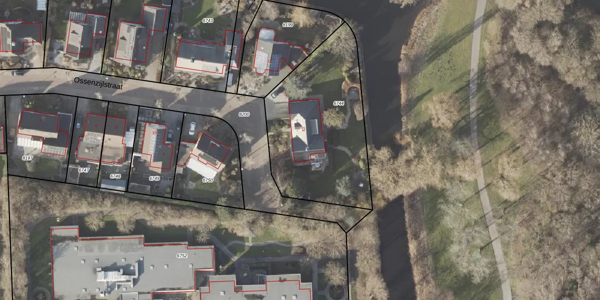 Ossenzijlstraat 13 is gelegen op kadastraal perceel NOP00AZ6744. Deze kadastrale aanduiding is uniek en wordt gebruikt door het Kadaster om eigendomsrechten en andere zakelijke rechten vast te leggen. Het perceel maakt onderdeel uit van de kadastrale gemeente Noordoostpolder.