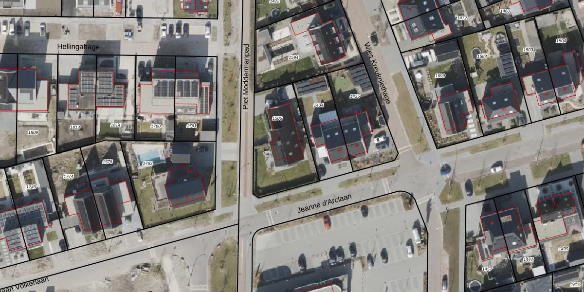 Het perceel waarop Piet Moddermanpad 1 staat heeft een oppervlakte van 650 m². Dit is een groot perceel. De perceeloppervlakte wordt geregistreerd door het Kadaster. Gedetailleerde informatie over de maten van dit perceel kunt u vinden in het rapport Kadastrale kaart met maatvoering van Piet Moddermanpad 1.