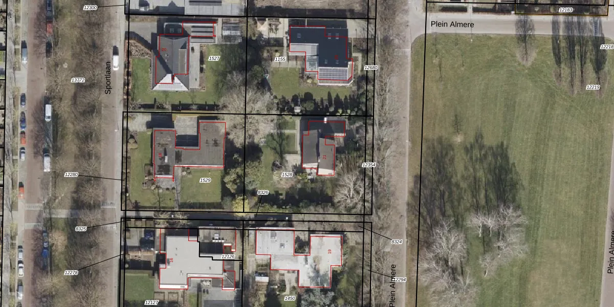 Plein Almere 21 is gelegen op kadastraal perceel NOP00AZ1528. Deze kadastrale aanduiding is uniek en wordt gebruikt door het Kadaster om eigendomsrechten en andere zakelijke rechten vast te leggen. Het perceel maakt onderdeel uit van de kadastrale gemeente Noordoostpolder.