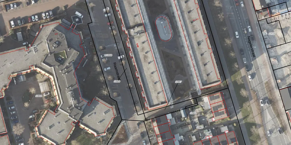 Het perceel waarop Raamstraat 33 staat heeft een oppervlakte van 5927 m². Dit is een zeer groot perceel. De perceeloppervlakte wordt geregistreerd door het Kadaster. Gedetailleerde informatie over de maten van dit perceel kunt u vinden in het rapport Kadastrale kaart met maatvoering van Raamstraat 33.