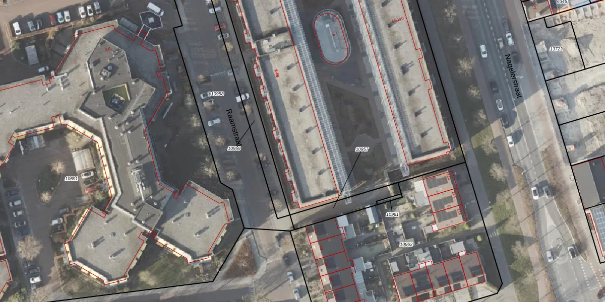 Het perceel waarop Raamstraat 35 staat heeft een oppervlakte van 5927 m². Dit is een zeer groot perceel. De perceeloppervlakte wordt geregistreerd door het Kadaster. Gedetailleerde informatie over de maten van dit perceel kunt u vinden in het rapport Kadastrale kaart met maatvoering van Raamstraat 35.