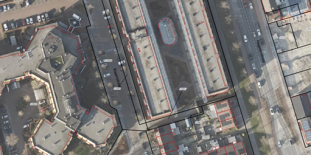 Het perceel waarop Raamstraat 53 staat heeft een oppervlakte van 5927 m². Dit is een zeer groot perceel. De perceeloppervlakte wordt geregistreerd door het Kadaster. Gedetailleerde informatie over de maten van dit perceel kunt u vinden in het rapport Kadastrale kaart met maatvoering van Raamstraat 53.