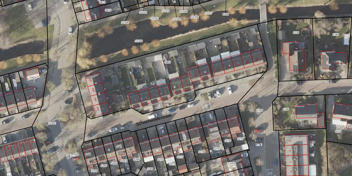 Het perceel waarop Scheerwoldestraat 9 staat heeft een oppervlakte van 3075 m². Dit is een zeer groot perceel. De perceeloppervlakte wordt geregistreerd door het Kadaster. Gedetailleerde informatie over de maten van dit perceel kunt u vinden in het rapport Kadastrale kaart met maatvoering van Scheerwoldestraat 9.