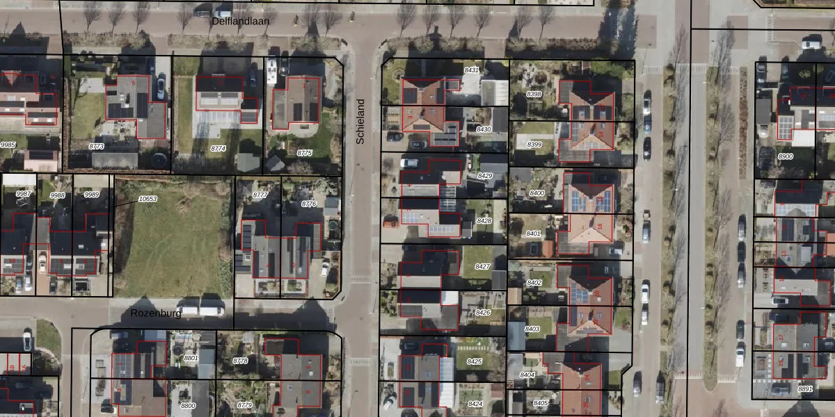 Het perceel waarop Schieland 7 staat heeft een oppervlakte van 335 m². Dit is een groot perceel. De perceeloppervlakte wordt geregistreerd door het Kadaster. Gedetailleerde informatie over de maten van dit perceel kunt u vinden in het rapport Kadastrale kaart met maatvoering van Schieland 7.