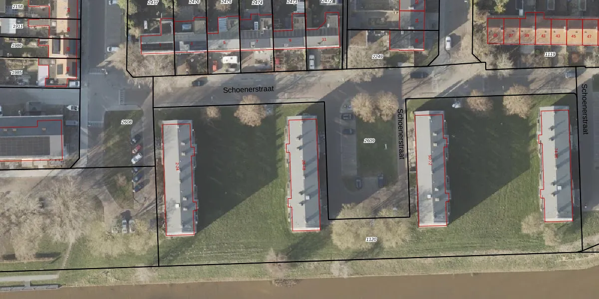 Het perceel waarop Schoenerstraat 28 staat heeft een oppervlakte van 6480 m². Dit is een zeer groot perceel. De perceeloppervlakte wordt geregistreerd door het Kadaster. Gedetailleerde informatie over de maten van dit perceel kunt u vinden in het rapport Kadastrale kaart met maatvoering van Schoenerstraat 28.