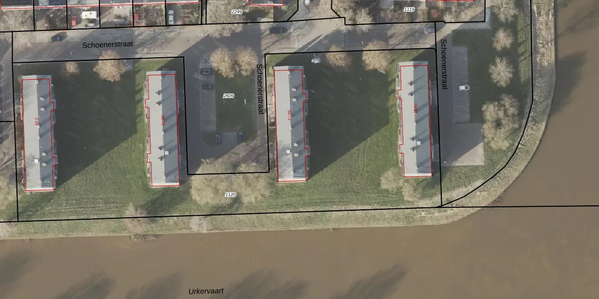 Het perceel waarop Schoenerstraat 62 staat heeft een oppervlakte van 6480 m². Dit is een zeer groot perceel. De perceeloppervlakte wordt geregistreerd door het Kadaster. Gedetailleerde informatie over de maten van dit perceel kunt u vinden in het rapport Kadastrale kaart met maatvoering van Schoenerstraat 62.