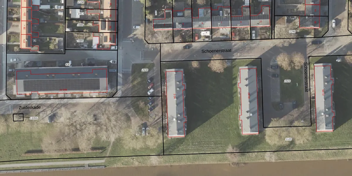 Het perceel waarop Schoenerstraat 8 staat heeft een oppervlakte van 6480 m². Dit is een zeer groot perceel. De perceeloppervlakte wordt geregistreerd door het Kadaster. Gedetailleerde informatie over de maten van dit perceel kunt u vinden in het rapport Kadastrale kaart met maatvoering van Schoenerstraat 8.