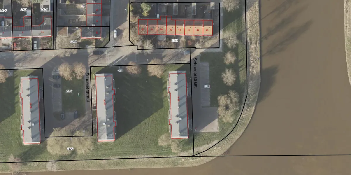 Het perceel waarop Schoenerstraat 84 staat heeft een oppervlakte van 6480 m². Dit is een zeer groot perceel. De perceeloppervlakte wordt geregistreerd door het Kadaster. Gedetailleerde informatie over de maten van dit perceel kunt u vinden in het rapport Kadastrale kaart met maatvoering van Schoenerstraat 84.