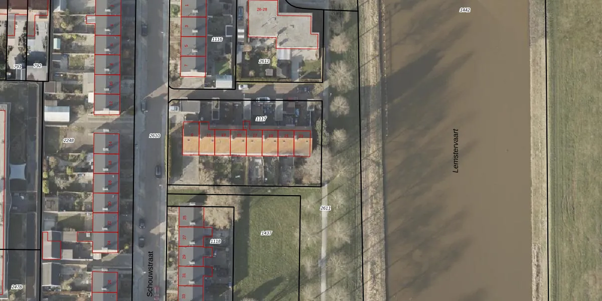 Schouwstraat 23 is gelegen op kadastraal perceel NOP00AZ1117. Deze kadastrale aanduiding is uniek en wordt gebruikt door het Kadaster om eigendomsrechten en andere zakelijke rechten vast te leggen. Het perceel maakt onderdeel uit van de kadastrale gemeente Noordoostpolder.