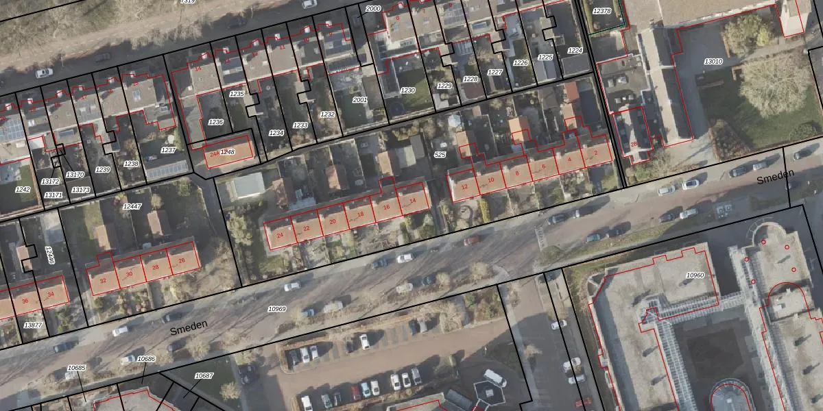 Het perceel waarop Smeden 14 staat heeft een oppervlakte van 2792 m². Dit is een zeer groot perceel. De perceeloppervlakte wordt geregistreerd door het Kadaster. Gedetailleerde informatie over de maten van dit perceel kunt u vinden in het rapport Kadastrale kaart met maatvoering van Smeden 14.