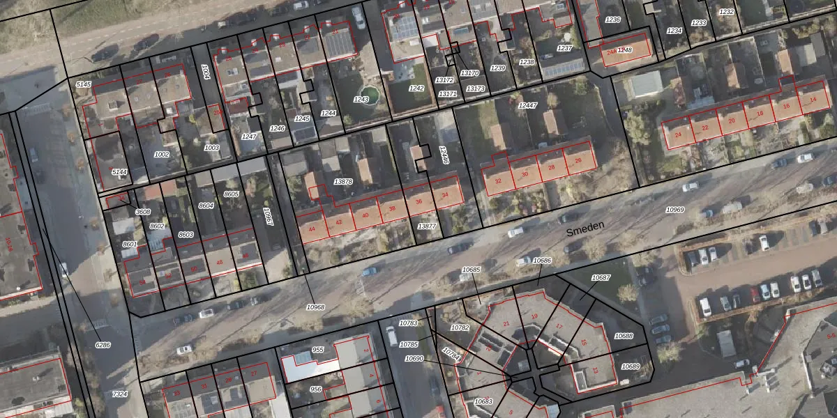 Het perceel waarop Smeden 36 staat heeft een oppervlakte van 199 m². Dit is een middelgroot perceel. De perceeloppervlakte wordt geregistreerd door het Kadaster. Gedetailleerde informatie over de maten van dit perceel kunt u vinden in het rapport Kadastrale kaart met maatvoering van Smeden 36.