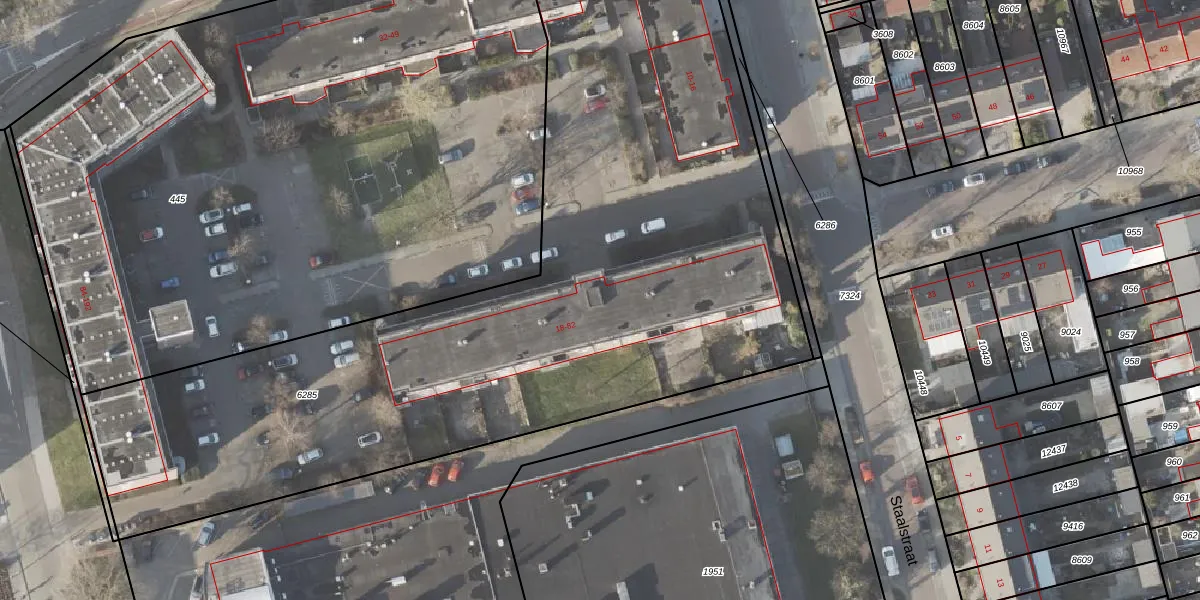 Het perceel waarop Staalstraat 20 staat heeft een oppervlakte van 4840 m². Dit is een zeer groot perceel. De perceeloppervlakte wordt geregistreerd door het Kadaster. Gedetailleerde informatie over de maten van dit perceel kunt u vinden in het rapport Kadastrale kaart met maatvoering van Staalstraat 20.