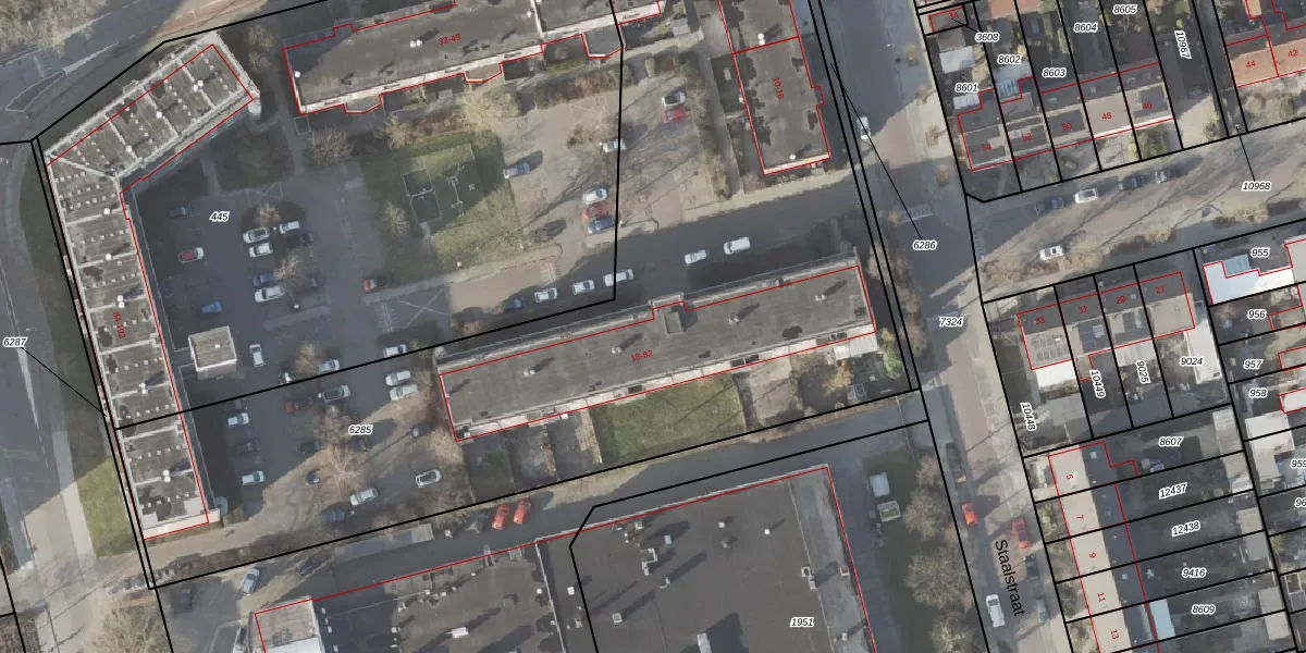 Het perceel waarop Staalstraat 24 staat heeft een oppervlakte van 4840 m². Dit is een zeer groot perceel. De perceeloppervlakte wordt geregistreerd door het Kadaster. Gedetailleerde informatie over de maten van dit perceel kunt u vinden in het rapport Kadastrale kaart met maatvoering van Staalstraat 24.