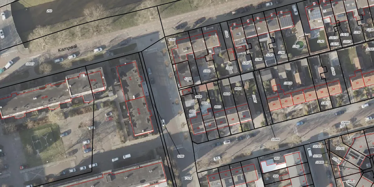 Gebruik de zoekbalk of klik op een perceel voor informatie over de adressen binnen dit perceel.