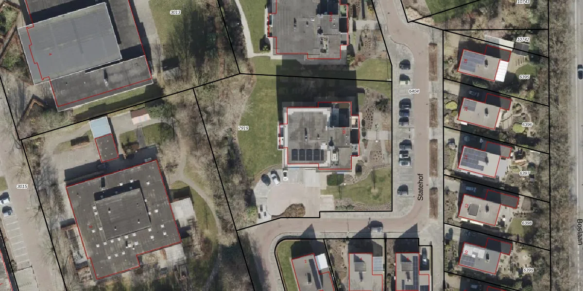 Het perceel waarop Statehof 17 staat heeft een oppervlakte van 2950 m². Dit is een zeer groot perceel. De perceeloppervlakte wordt geregistreerd door het Kadaster. Gedetailleerde informatie over de maten van dit perceel kunt u vinden in het rapport Kadastrale kaart met maatvoering van Statehof 17.