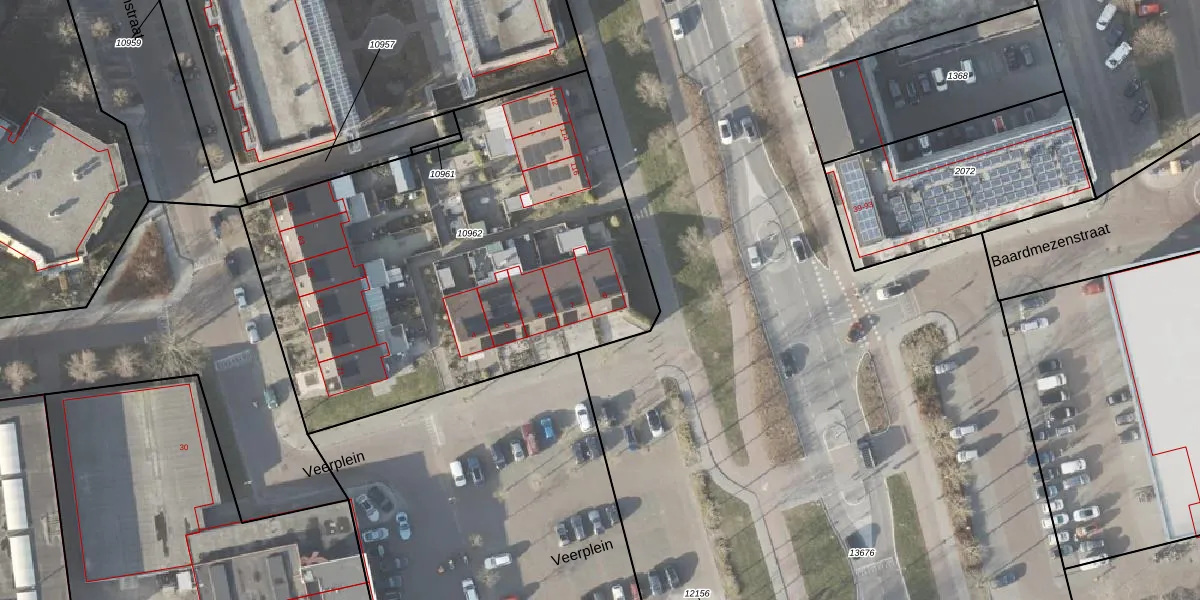 Het perceel waarop Veerplein 8 staat heeft een oppervlakte van 2575 m². Dit is een zeer groot perceel. De perceeloppervlakte wordt geregistreerd door het Kadaster. Gedetailleerde informatie over de maten van dit perceel kunt u vinden in het rapport Kadastrale kaart met maatvoering van Veerplein 8.