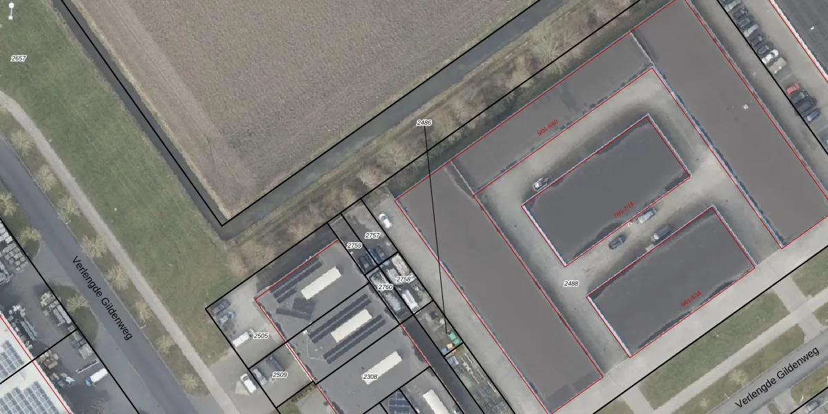 Verlengde Gildenweg 9-13 is gelegen op kadastraal perceel NOP00A2488. Deze kadastrale aanduiding is uniek en wordt gebruikt door het Kadaster om eigendomsrechten en andere zakelijke rechten vast te leggen. Het perceel maakt onderdeel uit van de kadastrale gemeente Noordoostpolder.