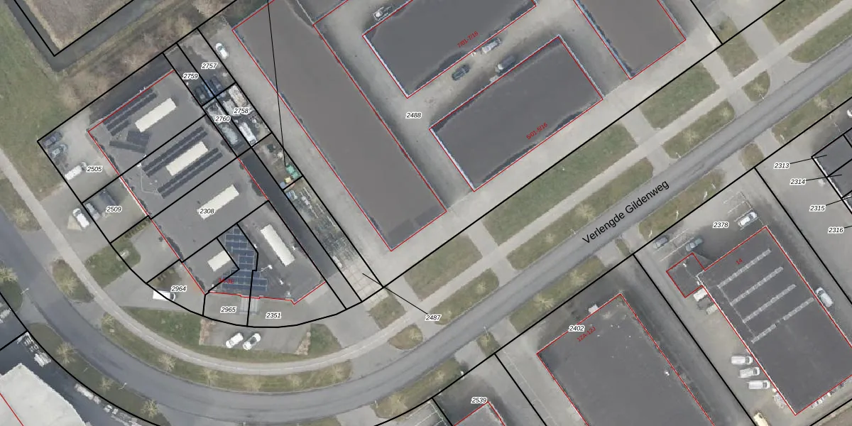 Verlengde Gildenweg 9-14 is gelegen op kadastraal perceel NOP00A2488. Deze kadastrale aanduiding is uniek en wordt gebruikt door het Kadaster om eigendomsrechten en andere zakelijke rechten vast te leggen. Het perceel maakt onderdeel uit van de kadastrale gemeente Noordoostpolder.