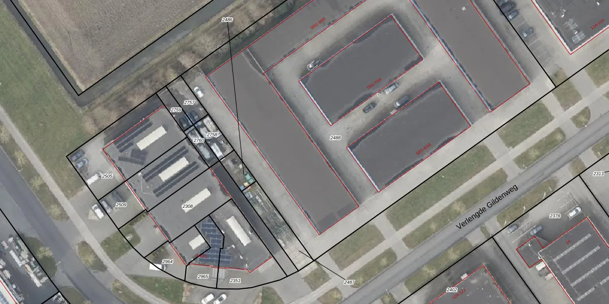 Verlengde Gildenweg 9-18 is gelegen op kadastraal perceel NOP00A2488. Deze kadastrale aanduiding is uniek en wordt gebruikt door het Kadaster om eigendomsrechten en andere zakelijke rechten vast te leggen. Het perceel maakt onderdeel uit van de kadastrale gemeente Noordoostpolder.