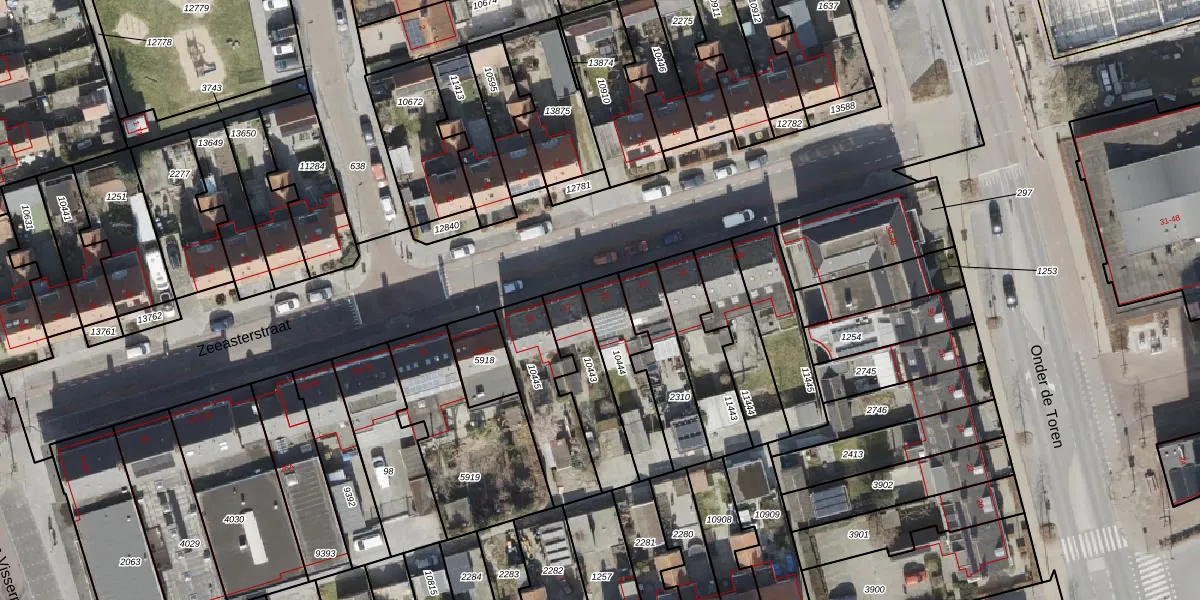 Gebruik de zoekbalk of klik op een perceel voor informatie over de adressen binnen dit perceel.