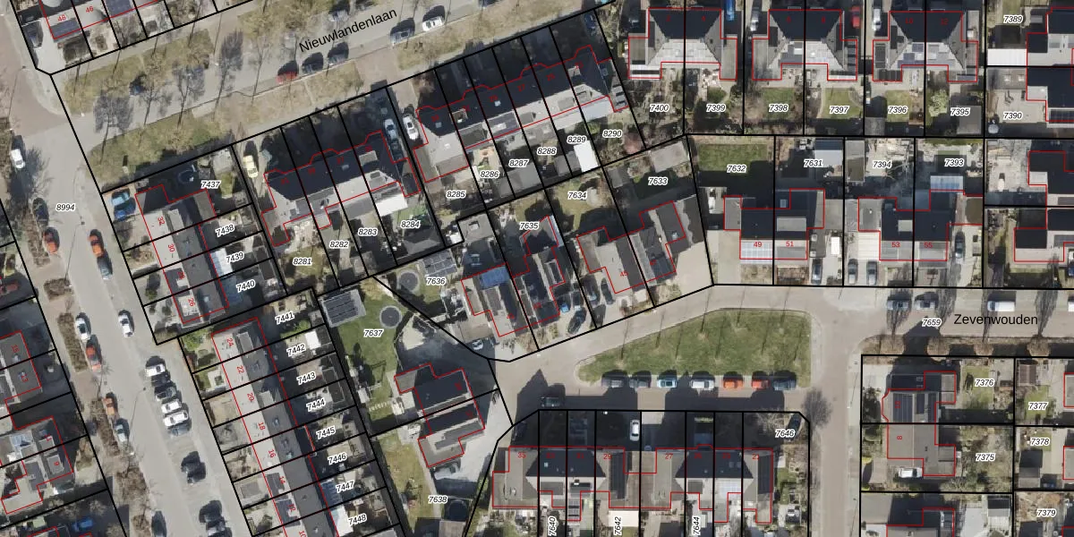 Het perceel waarop Zevenwouden 43 staat heeft een oppervlakte van 323 m². Dit is een groot perceel. De perceeloppervlakte wordt geregistreerd door het Kadaster. Gedetailleerde informatie over de maten van dit perceel kunt u vinden in het rapport Kadastrale kaart met maatvoering van Zevenwouden 43.