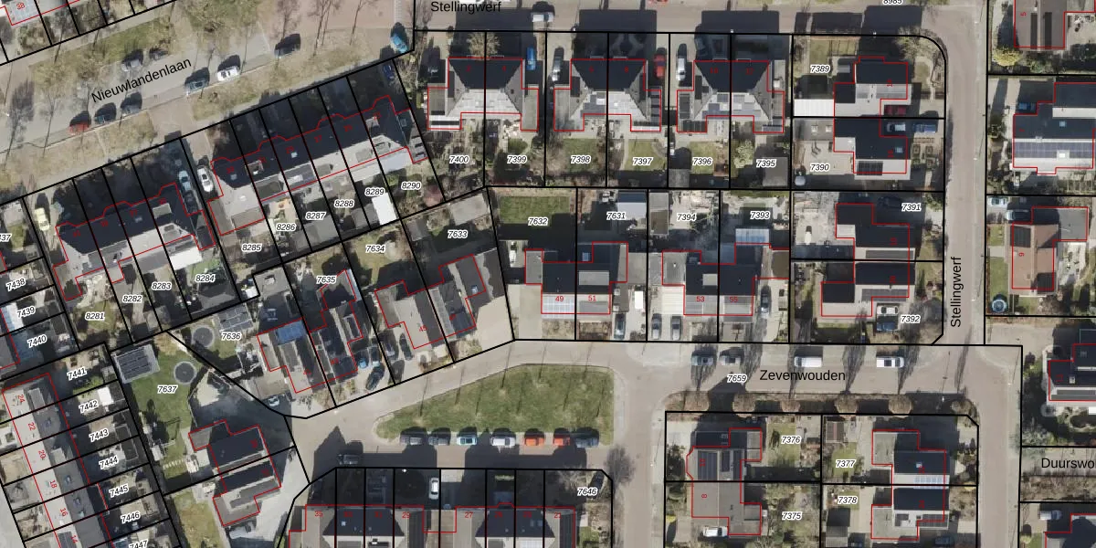 Het perceel waarop Zevenwouden 49 staat heeft een oppervlakte van 385 m². Dit is een groot perceel. De perceeloppervlakte wordt geregistreerd door het Kadaster. Gedetailleerde informatie over de maten van dit perceel kunt u vinden in het rapport Kadastrale kaart met maatvoering van Zevenwouden 49.