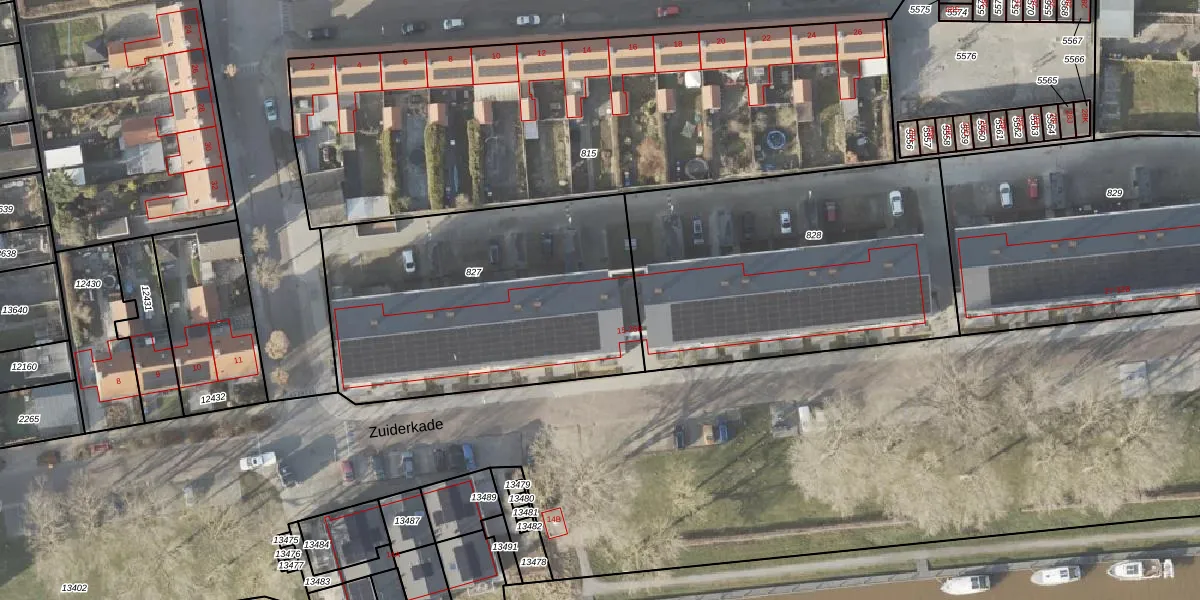 Het perceel waarop Zuiderkade 20-B staat heeft een oppervlakte van 1523 m². Dit is een zeer groot perceel. De perceeloppervlakte wordt geregistreerd door het Kadaster. Gedetailleerde informatie over de maten van dit perceel kunt u vinden in het rapport Kadastrale kaart met maatvoering van Zuiderkade 20-B.