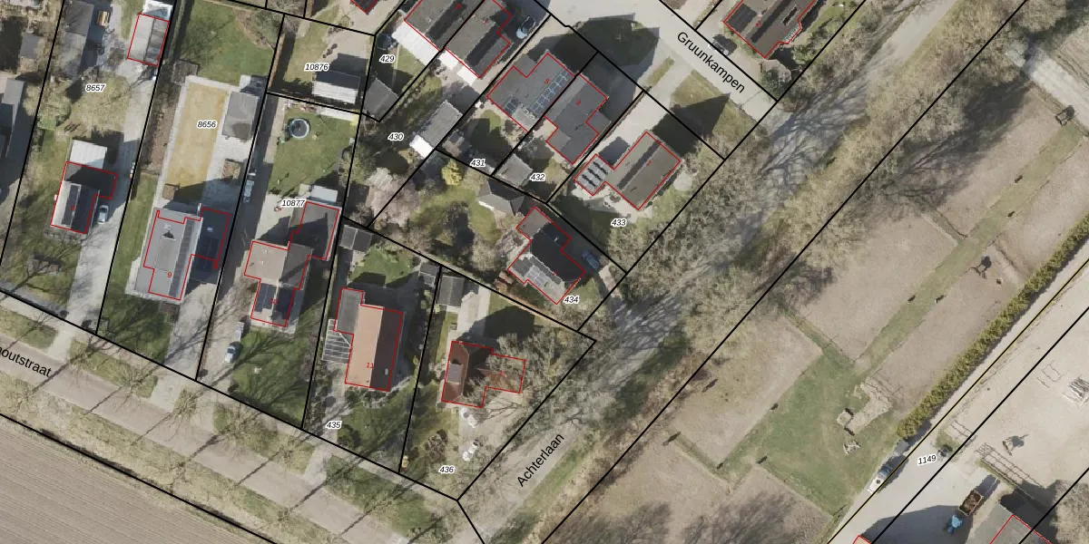 Gebruik de zoekbalk of klik op een perceel voor informatie over de adressen binnen dit perceel.