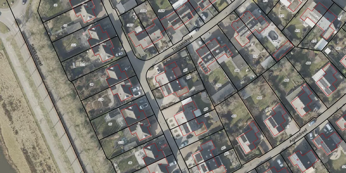 Gebruik de zoekbalk of klik op een perceel voor informatie over de adressen binnen dit perceel.