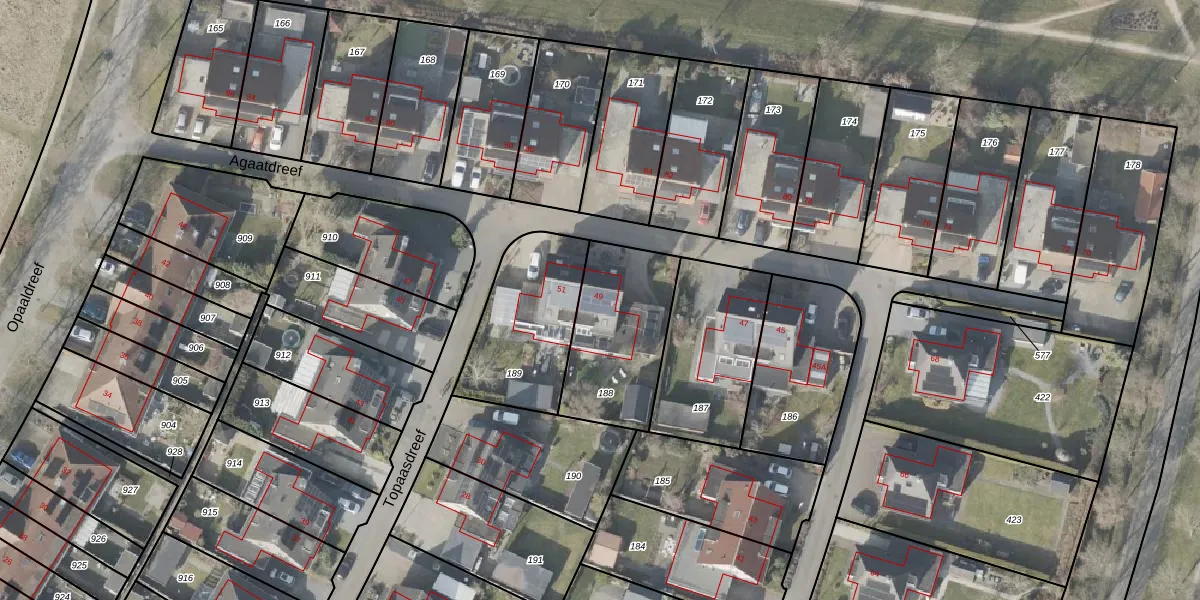 Het perceel waarop Agaatdreef 49 staat heeft een oppervlakte van 456 m². Dit is een groot perceel. De perceeloppervlakte wordt geregistreerd door het Kadaster. Gedetailleerde informatie over de maten van dit perceel kunt u vinden in het rapport Kadastrale kaart met maatvoering van Agaatdreef 49.